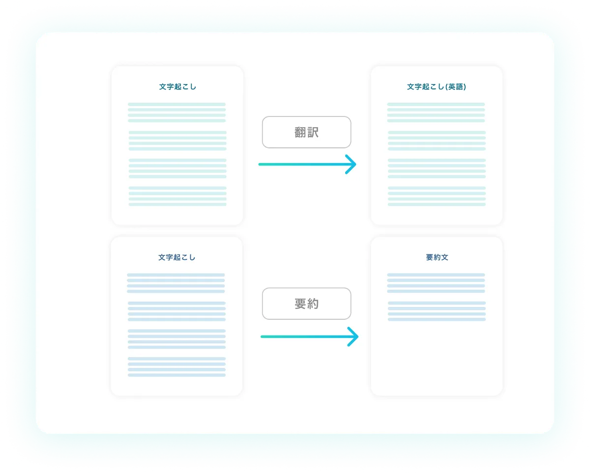 文字起こししたテキストを他言語翻訳、要約など自由に加工することができます。